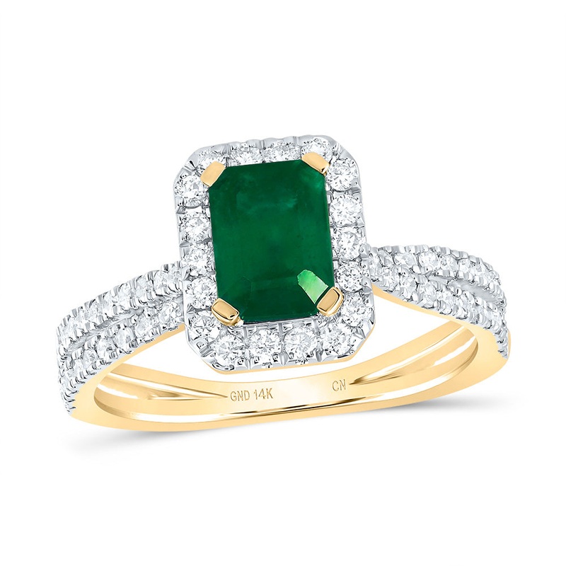 14kt Yellow Gold Womens Emerald Emerald Diamond Fashion Ring 1-1/2 Cttw