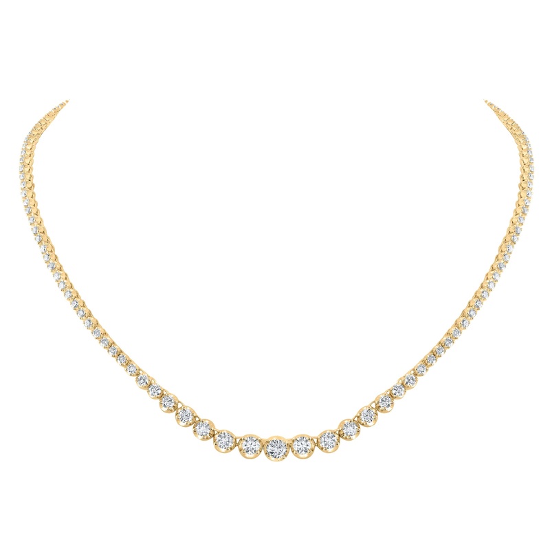 14kt Yellow Gold Womens Round Diamond Graduated Tennis Necklace 5-3/4 Cttw