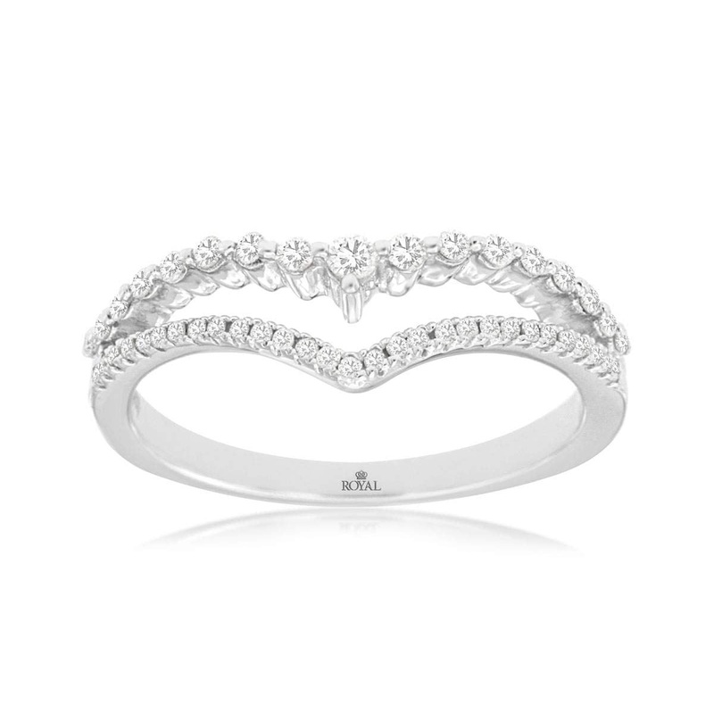 14K White Gold Double Row Chevron, One Row Shared Prongs, Band 46 Diamond= ~0.25 carats total weight