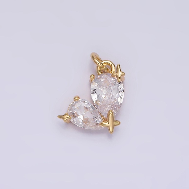 16K Gold Filled Double Clear CZ Teardrop Celestial Star Charm | N995