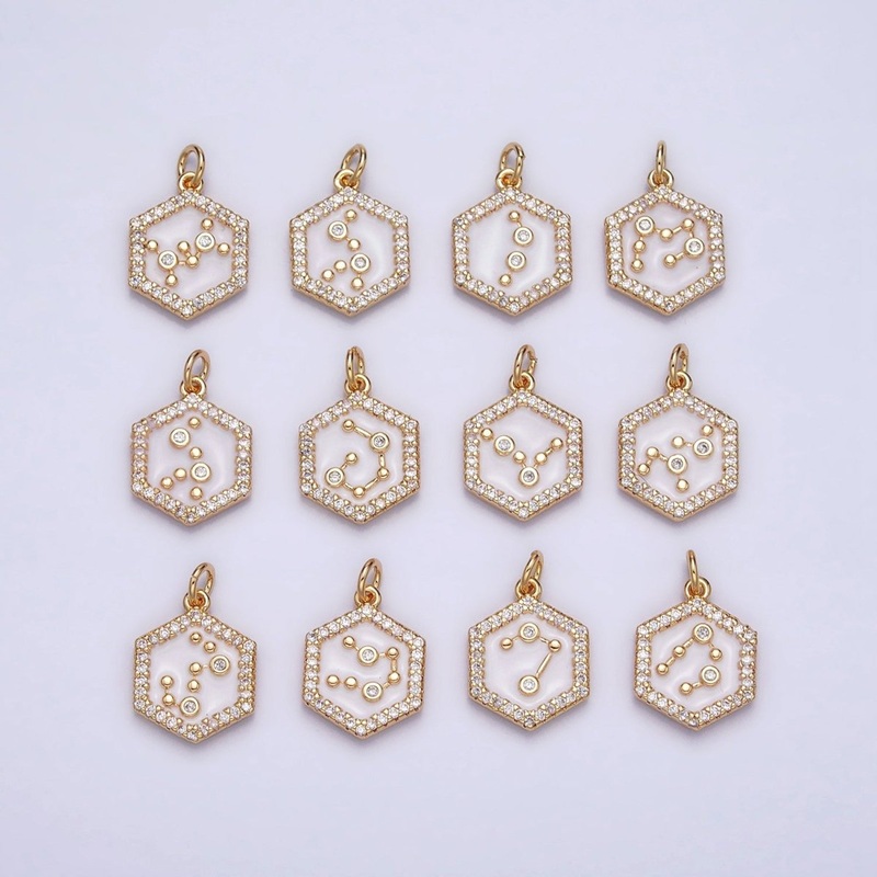 16K Gold Filled Mini Zodiac Sign Birth Star Constellation White Enamel Hexagonal Hammered Add-On Charm | A-A1391-A-A1396 Aries