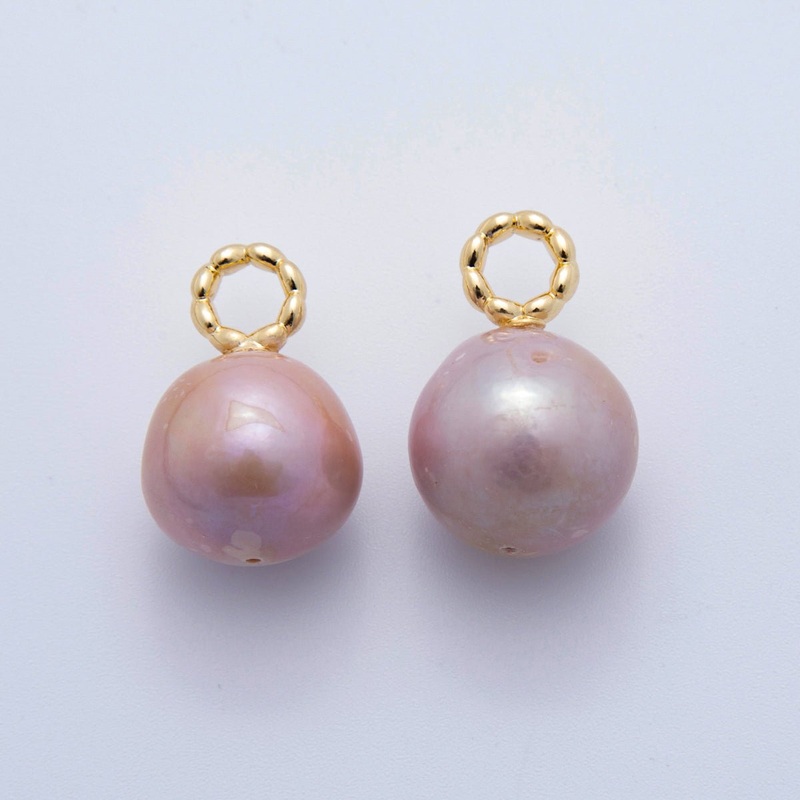 18K Gold Filled 23mm Purple Freshwater Full Round Circle Moon Pearl Charm | AF627