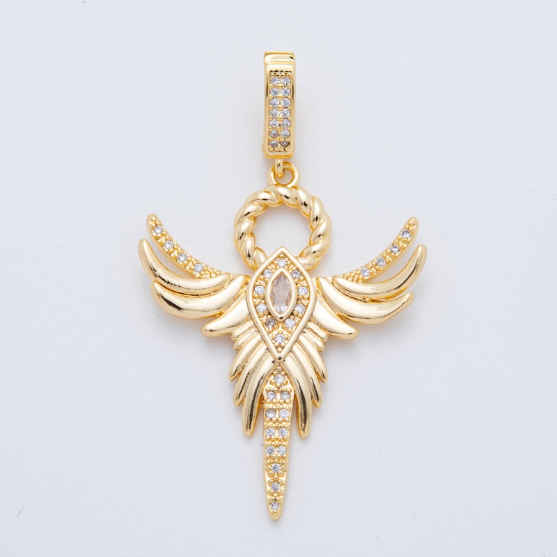 18K Gold Filled 50mm Micro Paved CZ Heavenly Phoenix Guardian Angel Pendant | AF-A1111