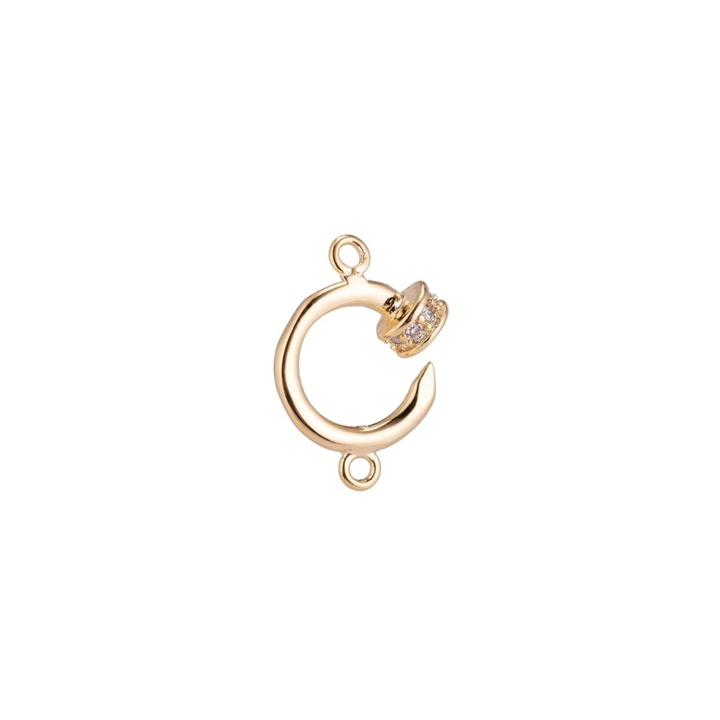 18K Gold Filled Alphabet Letter C, Hook Shape Cubic Zirconia Bracelet Charm Bead Finding Connector for Earring Jewelry Making, F-094