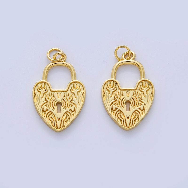 18K Gold Filled Artisan Heart Padlock Charm | AF324
