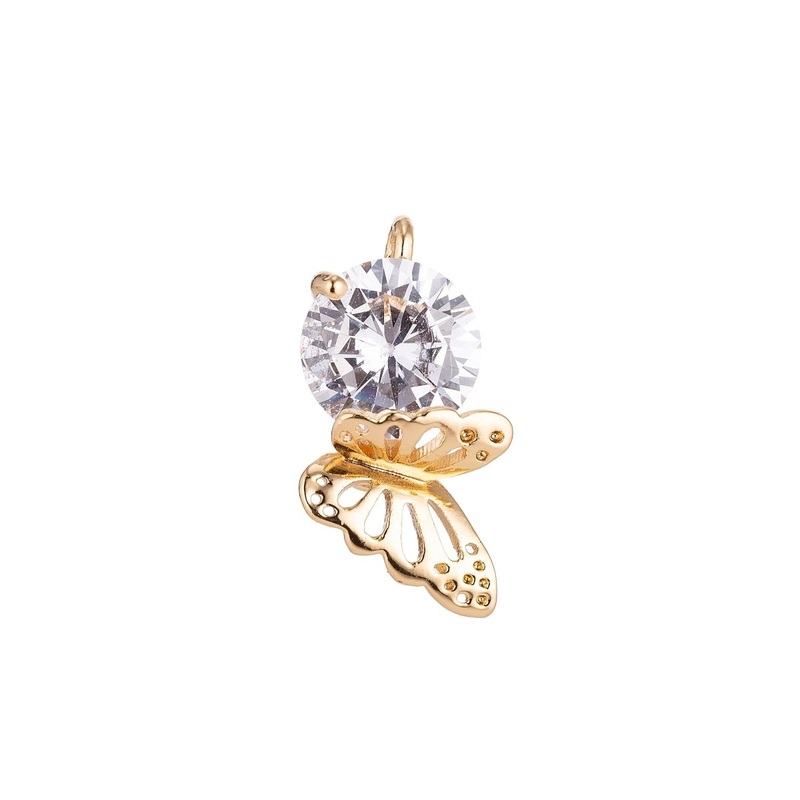 18K Gold Filled Butterfly Hanging on solitaire Crystal Cubic Zirconia Bracelet Delicate Necklace Pendant Earring Gift for Jewelry Making C-143