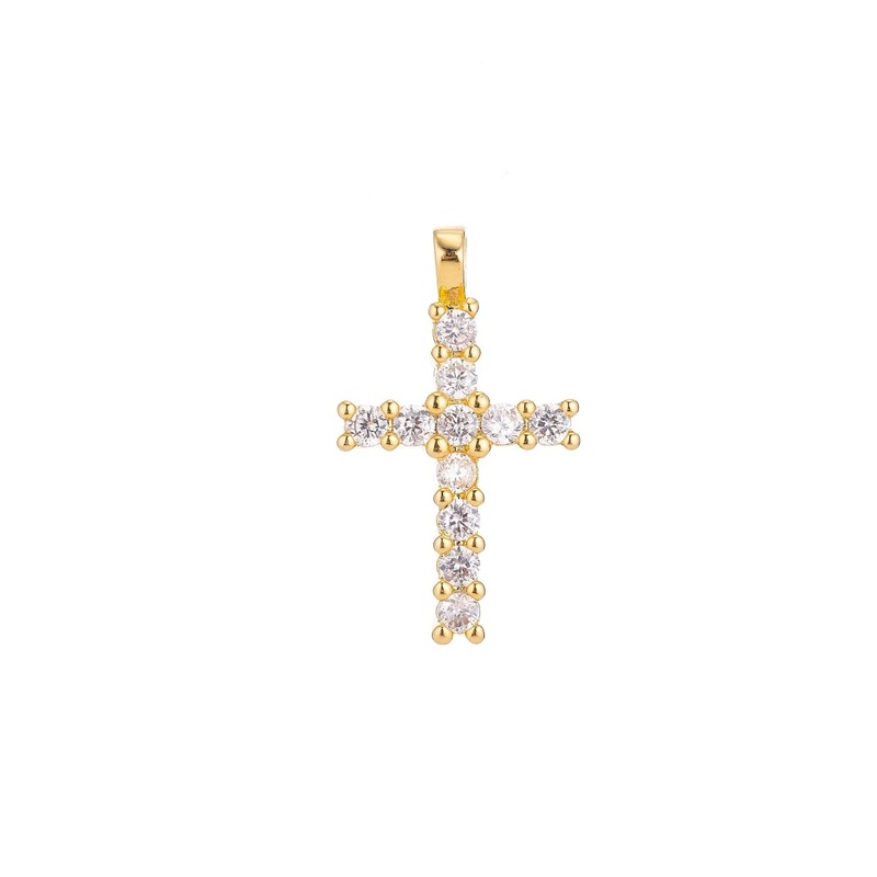 18k Gold Filled Dainty Delicate Cross Jesus Cubic Zirconia Necklace Pendant Bracelet Earring Charm Bails for Jewelry Making H-230 Gold