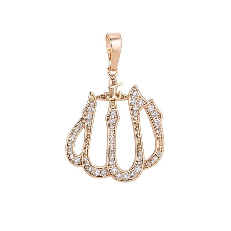 18k Gold Filled Dainty Islamic Word, Allah, Moslem God Cubic Zirconia Necklace Pendant Bead Bails Findings for Jewelry Making H-578