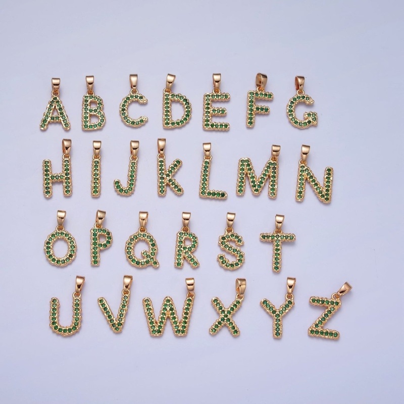 18k Gold Filled Emerald Green CZ Initial, Letter Alphabet Micro Pave charms Dainty Gold Cubic Pendant Charm for Necklace Bracelet Personalized Jewelry A-901-A-913 a