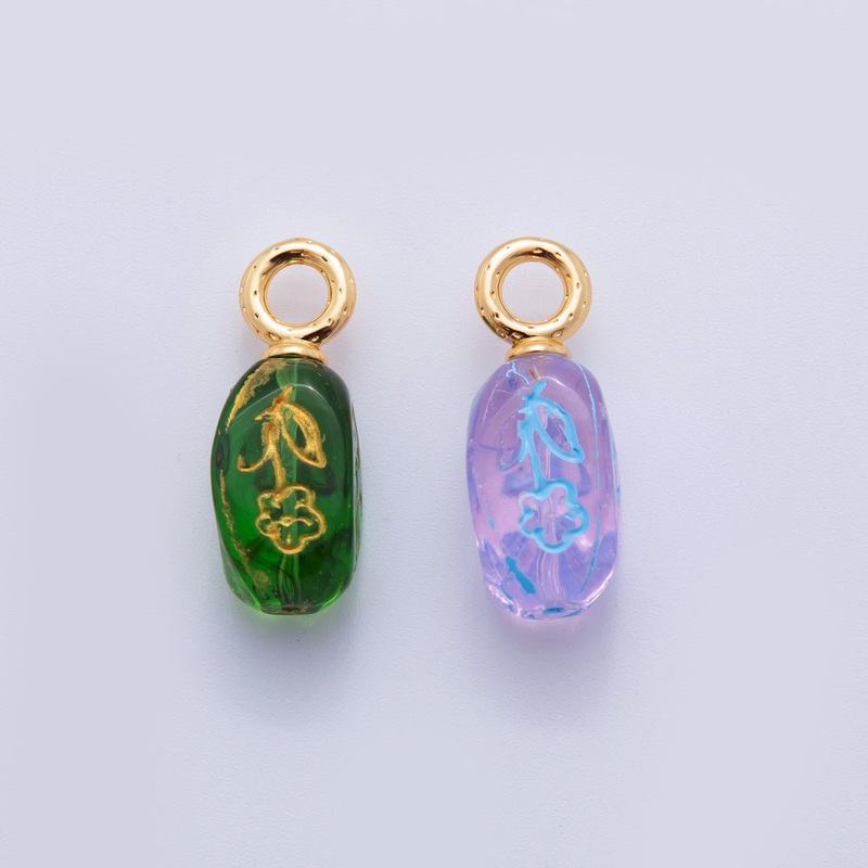 Material: Brass, Gold-Filled, Acrylic, EnamelSize: 24.6mm x 8.9mm x 8.9mmBail Size: 7.5mmQuantity: 1 PieceColor: 18KTheme: FloralLead Free, Nickel Free