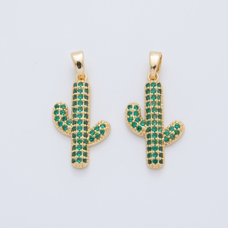 18K Gold Filled Green Micro Paved CZ Cactus Plant Pendant | AH779