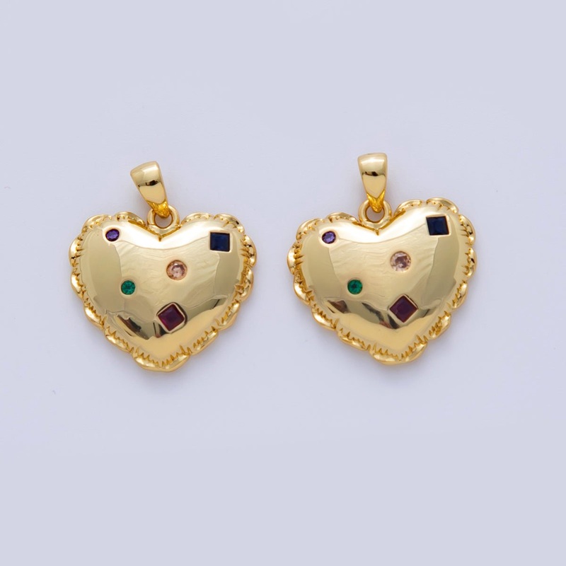 18K Gold Filled Multicolor CZ Dotted Puffed Heart Pendant | AF325