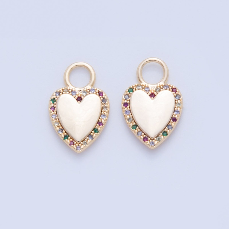 18K Gold Filled Multicolor Micro Paved CZ Heart Drop Earring Charm | AF349