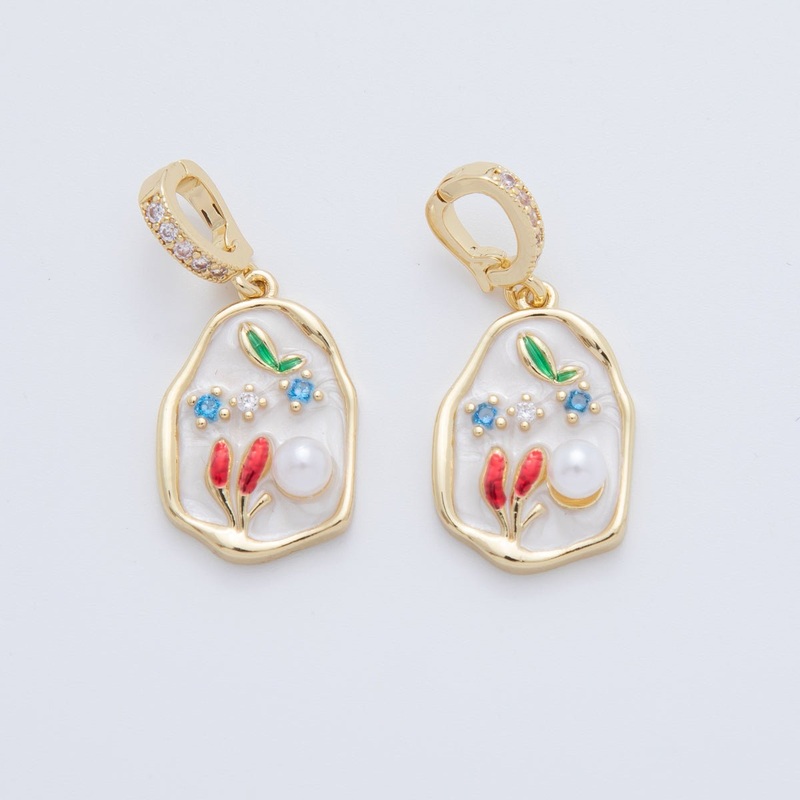 Material: Brass, Gold-Filled, Cubic Zirconia, Shell Pearl, EnamelSize: 29.1mm x 13.3mm x 5.1mmBail Size: 4.0mmQuantity: 1 PieceColor: 18KTheme: FloralLead Free, Nickel Free