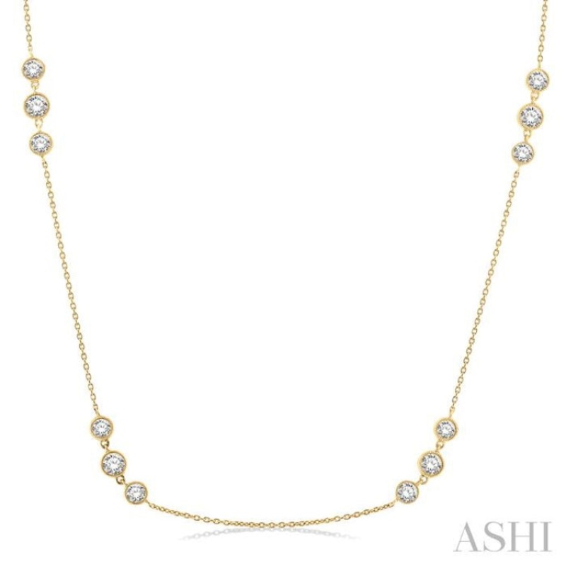 2.00 ctw Three Stone Bezel Set Round Cut Diamond Station Necklace in 14K Yellow Gold