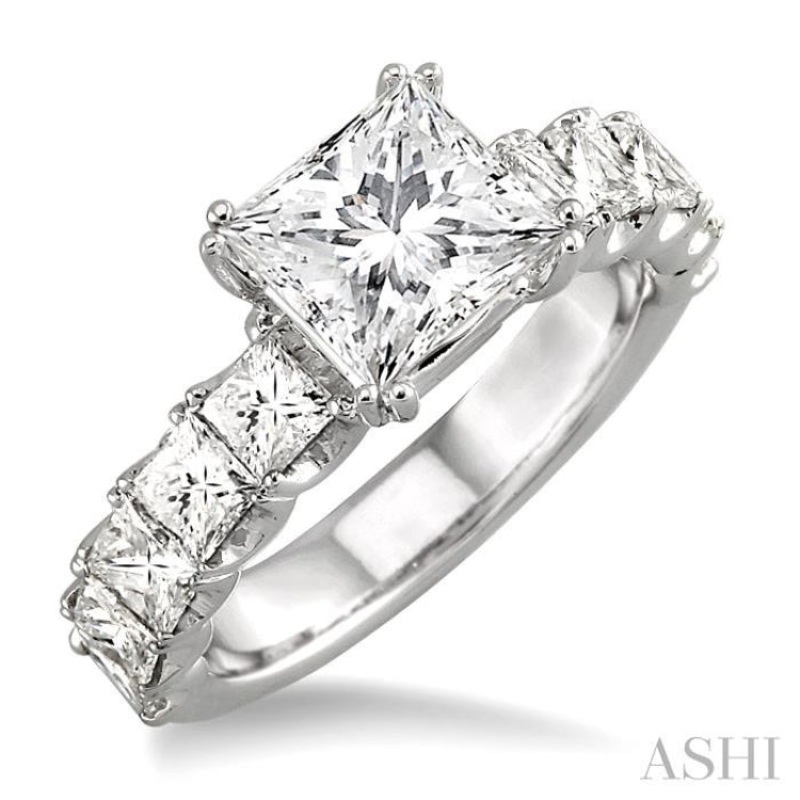 Exquisite Princess Cut Diamond Semi-Mount Ring signifies your timeless love and a promise that lasts for eternity. This fabulous ring is fashioned in lustrous 18 karat white gold and showcases 10 exquisite princess cut accented diamonds that forms a brilli
