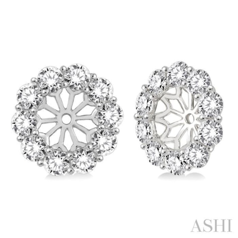 2 Ctw Round Cut Diamond Earring Jacket in 14K White Gold