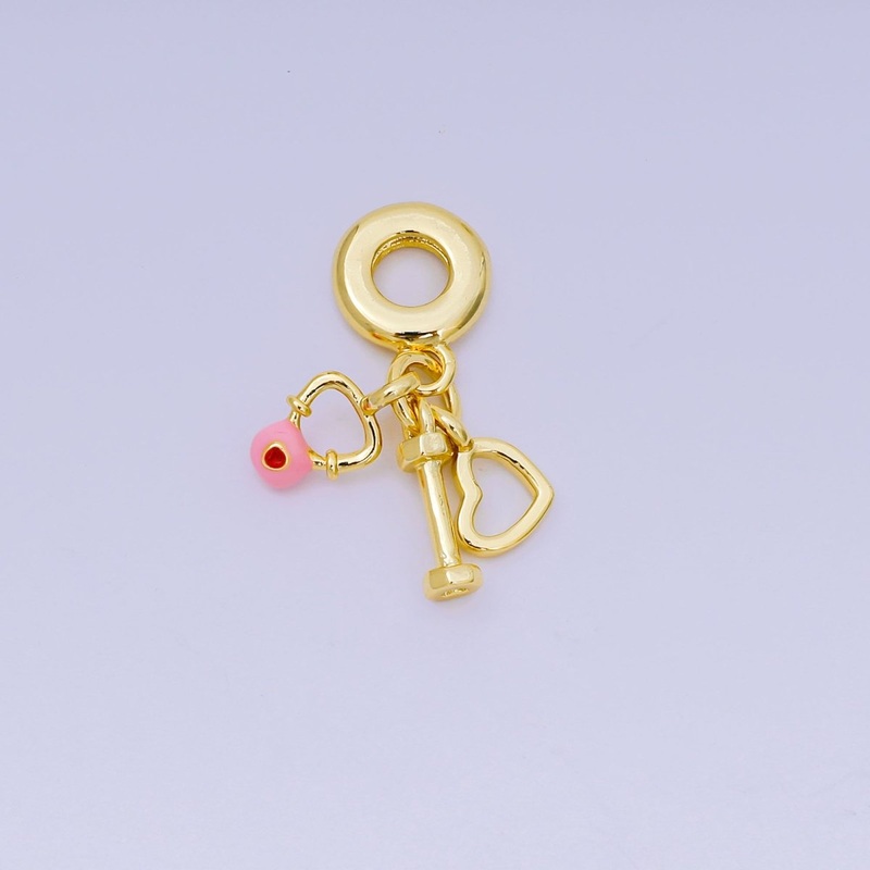 24K Gold Filled 11.5mm Red CZ Enamel Art Gym Set Charm in Heart, Barbell, & Dumbell Rhondelle Drop Pendant | M-099