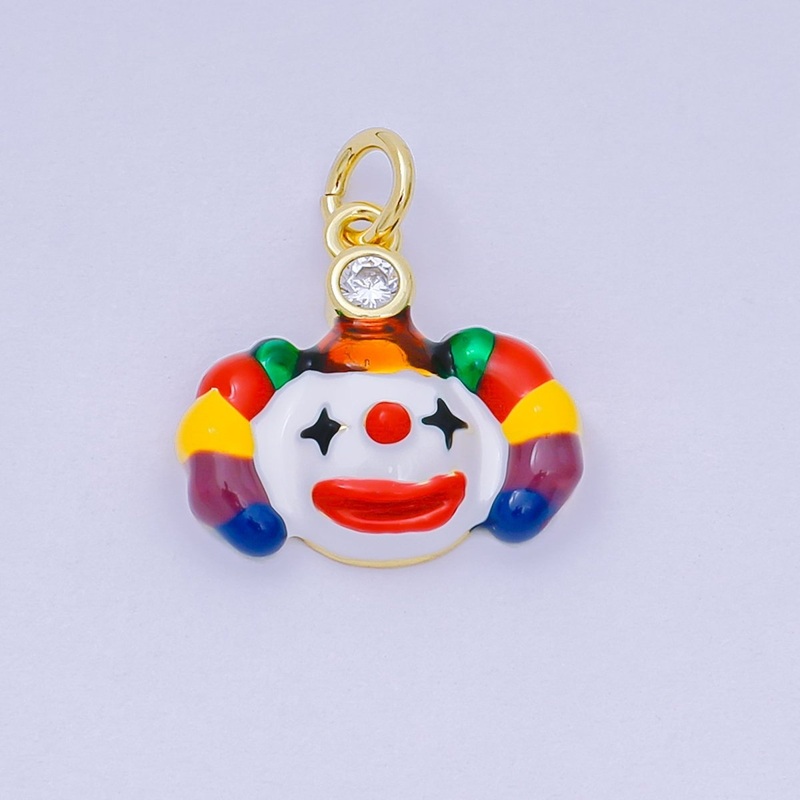 24K Gold Filled 15mm Enamel Art Funny Silly Clown Face Charm | D-254