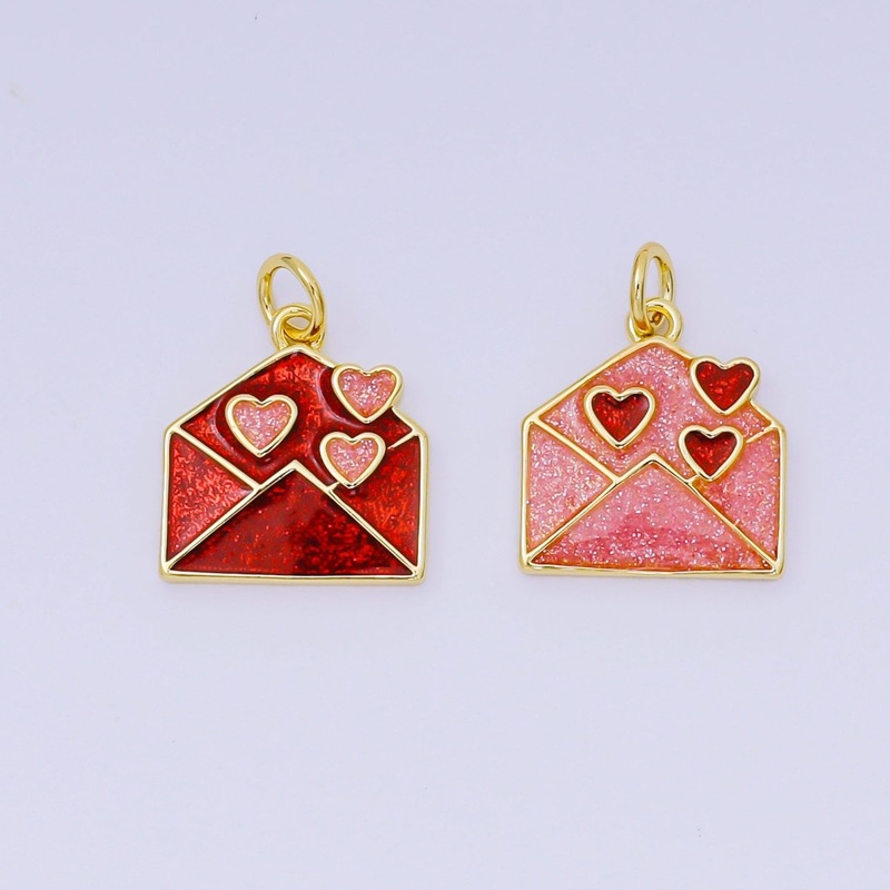 24K Gold Filled 15mm Enamel Art Love Letter Envelope Charm | AH-671 Pink