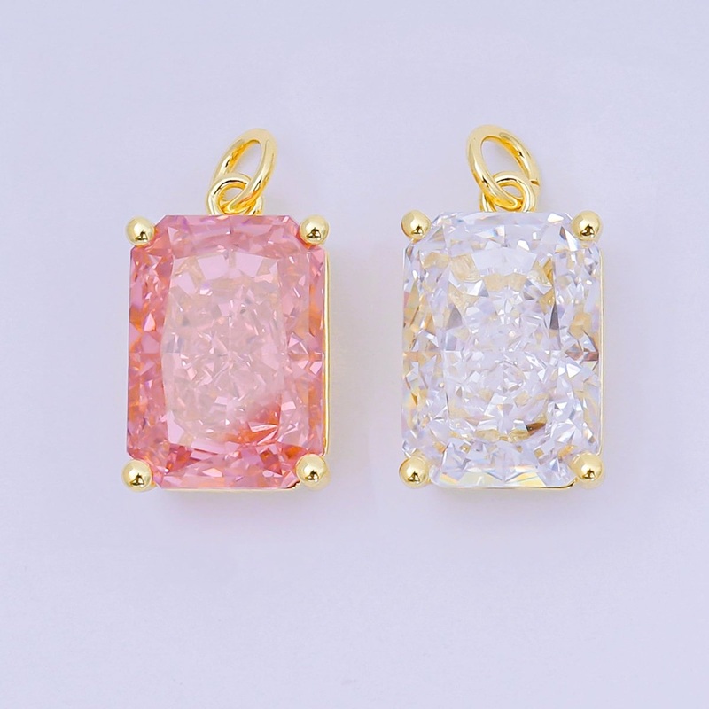 24K Gold Filled 16.5mm Clear, Pink Baguette CZ Charm | D397 Pink