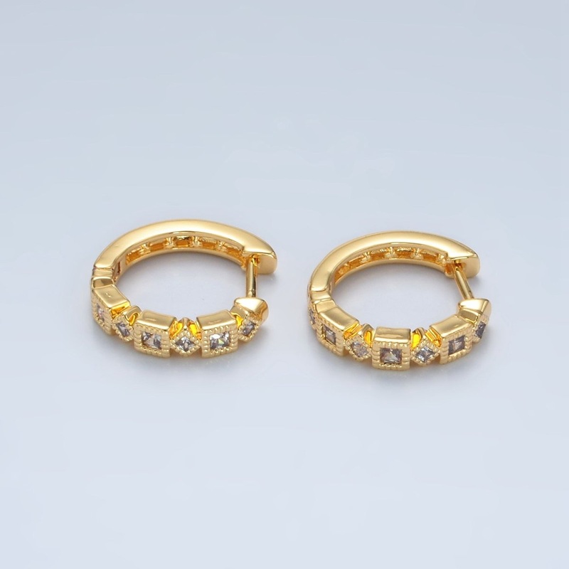 24K Gold Filled 17mm Geometric CZ Huggie Earrings | T192