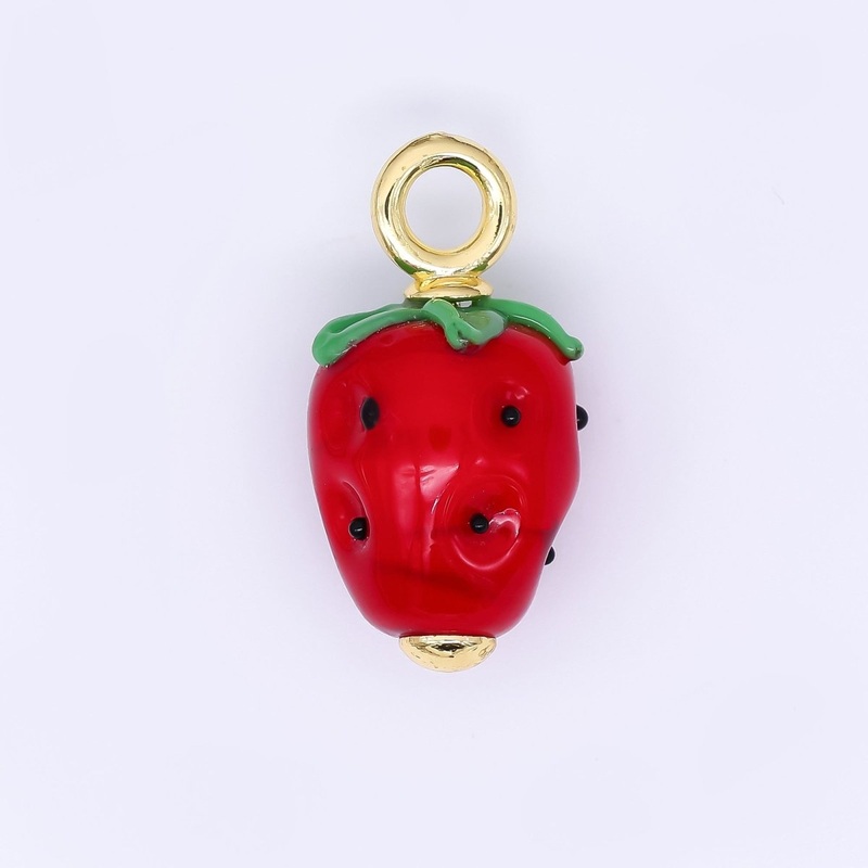24K Gold Filled 27mm Glass Art Crimson Red Strawberry Fruit Charm | AH-625