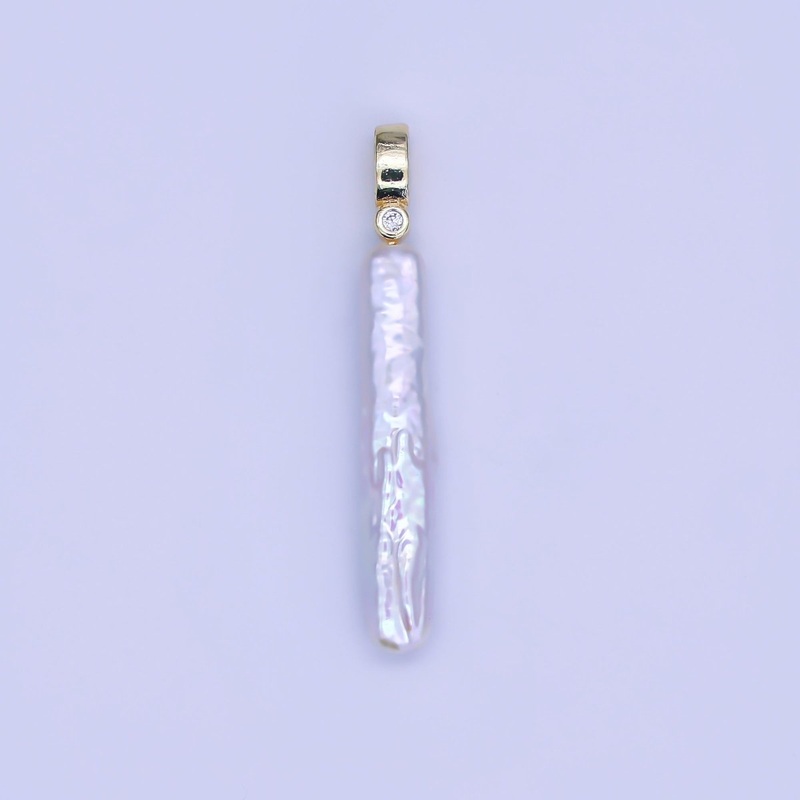 24K Gold Filled 32mm Freshwater Pearl Long Toothpick-Shaped Pendant | P-1713
