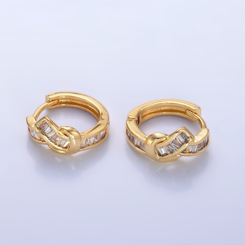 24K Gold Filled Baguette Knot Huggie Earrings | AB006