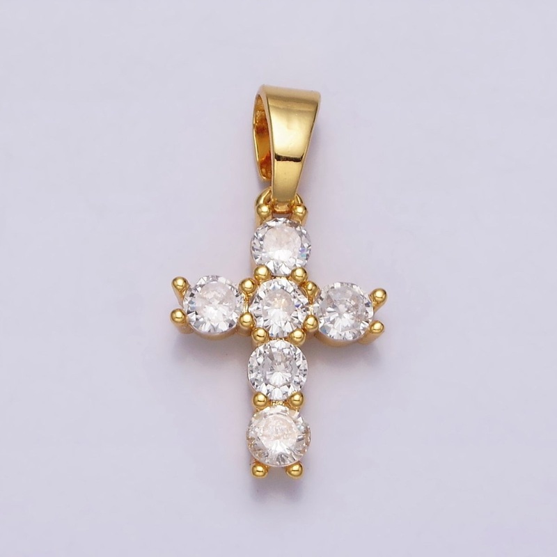 24K Gold Filled Clear CZ Religious 24mm Cross Pendant | AA442