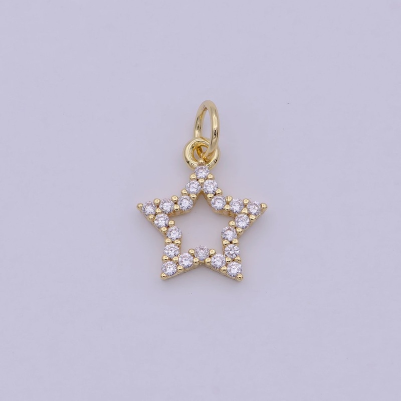 24K Gold Filled Clear Micro Paved CZ Celestial Star Open Charm N-243