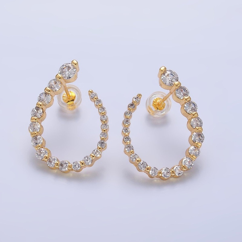 24K Gold Filled CZ Circular U-Shaped Horseshoe Earrings Set | AB873