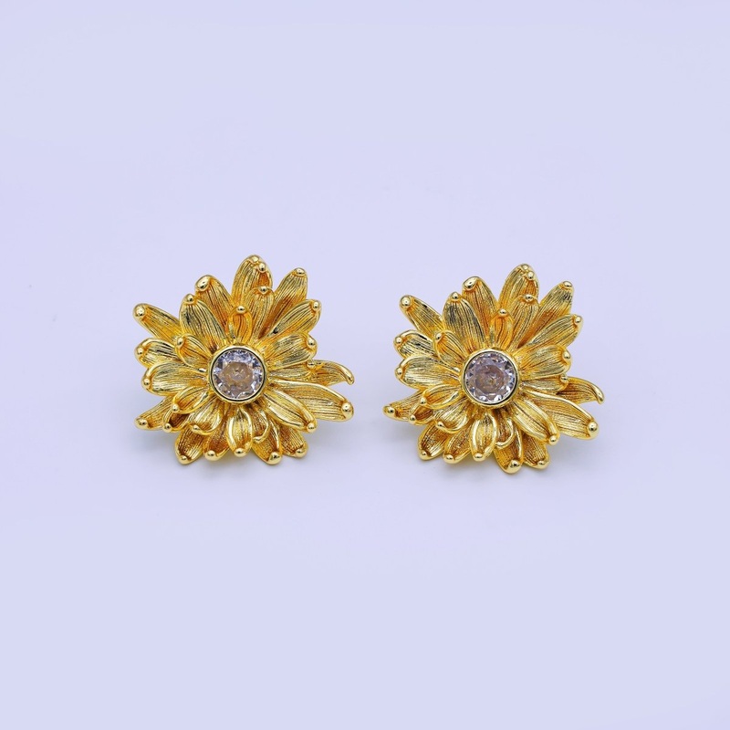 24K Gold Filled CZ Flower Textured Stud Earrings | AI498