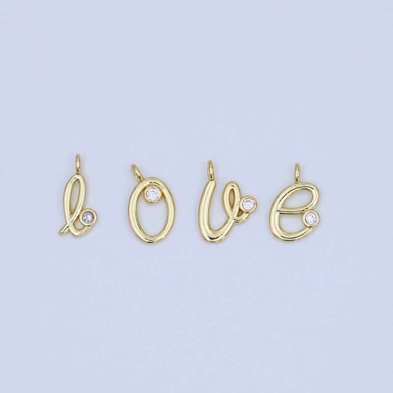 24K Gold Filled CZ “LOVE” Cursive Script Charm Set | N047