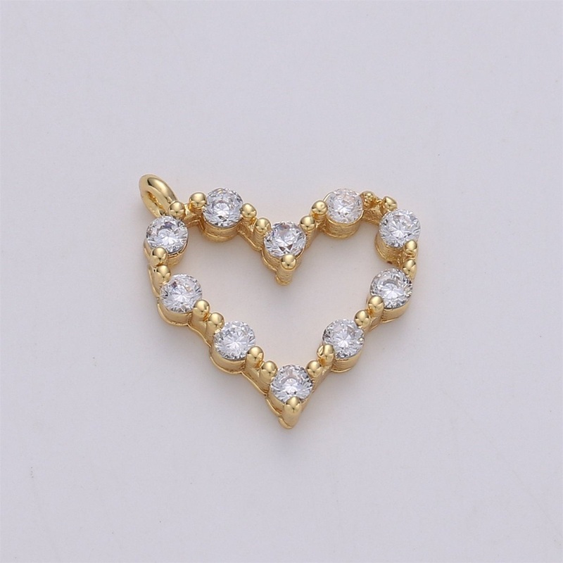 24K Gold Filled Dainty Cute Heart Charm with Love Micro Pave Cubic Zirconia CZ Stone for Necklace or Bracelet, C-887