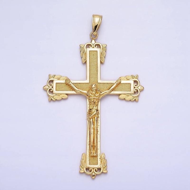 24K Gold Filled Dotted Textured Jesus Crucifix Cross Religious Pendant | AA203
