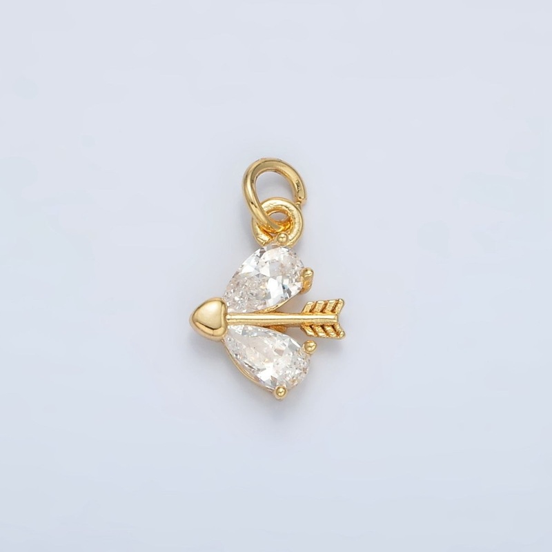 24K Gold Filled Heart CZ Cupid Arrow Charm | AC107