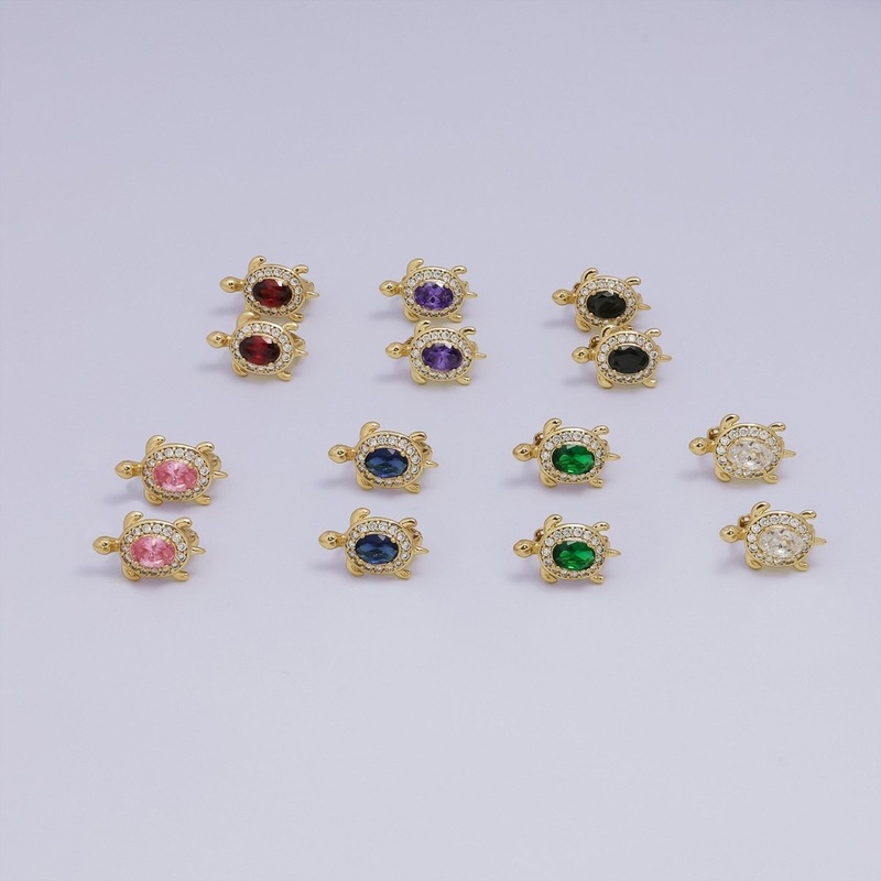 24K Gold Filled Micro Paved CZ Turtle Tortoise Animal Huggie Earrings | AB1036 – AB1062 Pink