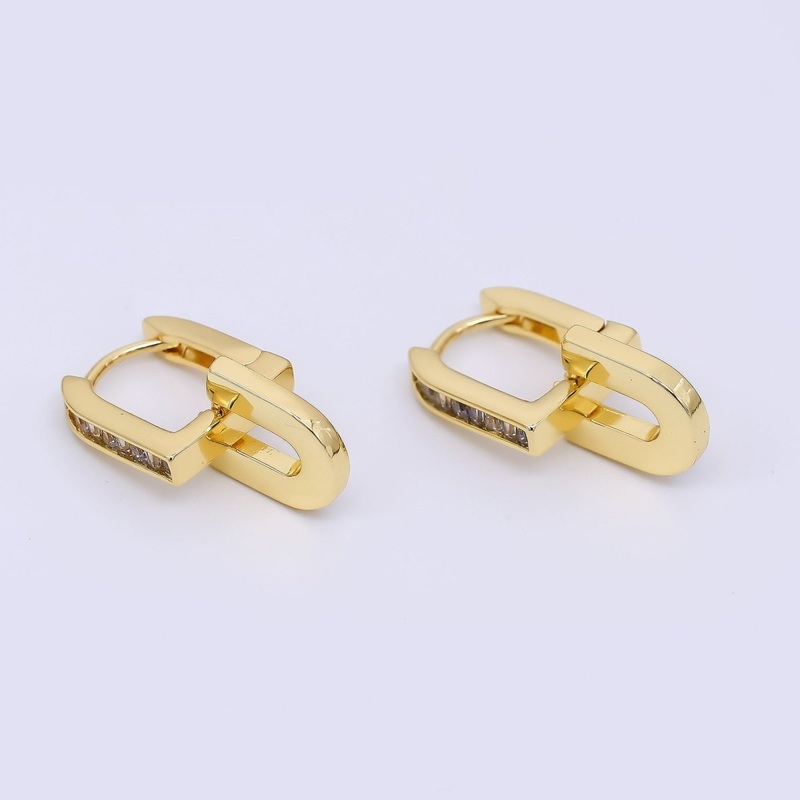 Material: Brass, Gold Filled, Cubic ZirconiaSize: 12.7mm x 11.6mm x 2.7mmQuantity: 1 PairColor: 24KTheme: Geometric & Chain LinksLead Free, Nickel Free