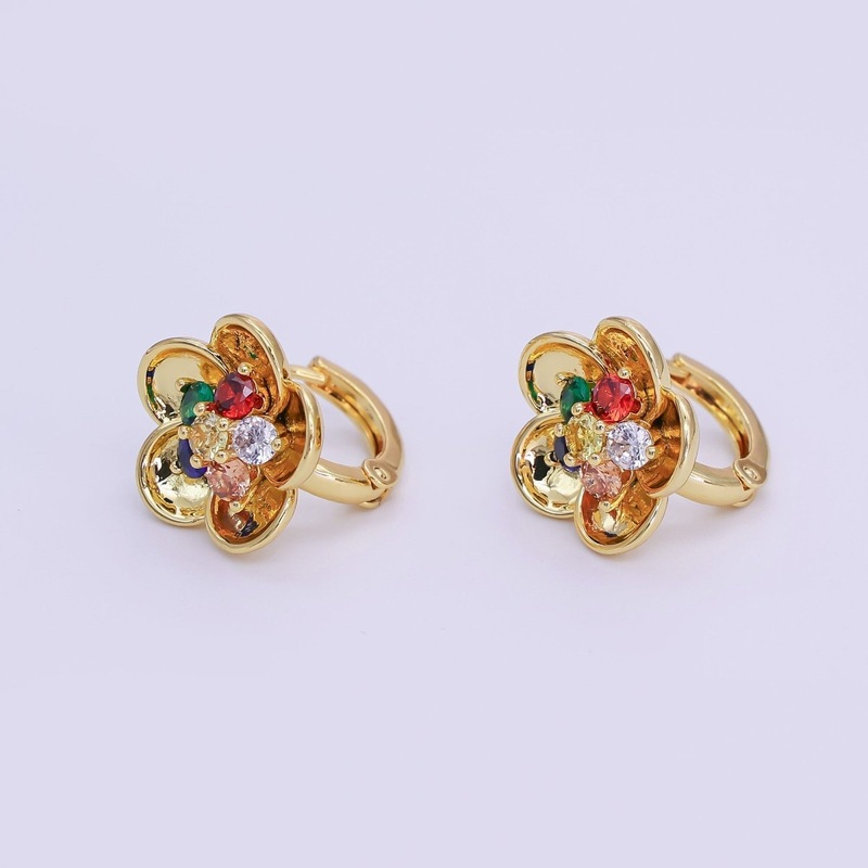 Material: Brass, Gold-Filled, Cubic ZirconiaSize: 14.8mm x 15.2mm x 17mmQuantity: 1 PairColor: 24KTheme: FloralLead Free, Nickel Free