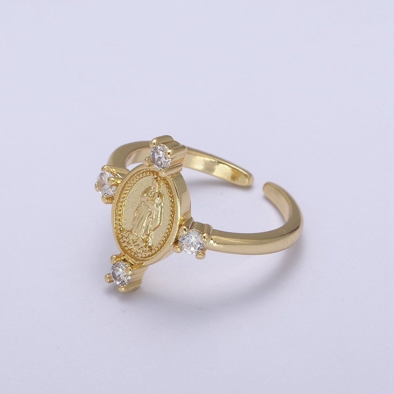 24K Gold Filled Oval Lady Guadalupe Ring, Crystal Zirconia CZ Adjustable Stacking Ring, Gift For Her | U-469