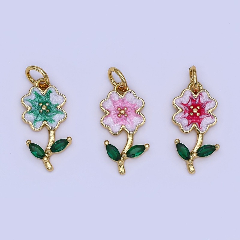 Material: Brass, Gold-Filled, Cubic Zirconia, EnamelSize: 17mm x 8.4mm x 2.8mmBail Size: 5mm x 0.8mmQuantity: 1 PieceColor: 24KTheme: FloralLead Free, Nickel Free