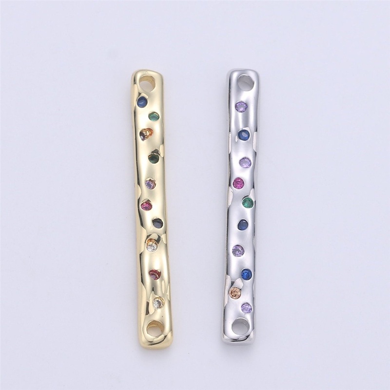 24K Gold Filled Rustic Textured Bar Dainty Connector with Micro Pave Multi Color Rainbow Cubic Zirconia CZ Stone for Necklace or Bracelet F-360 Gold