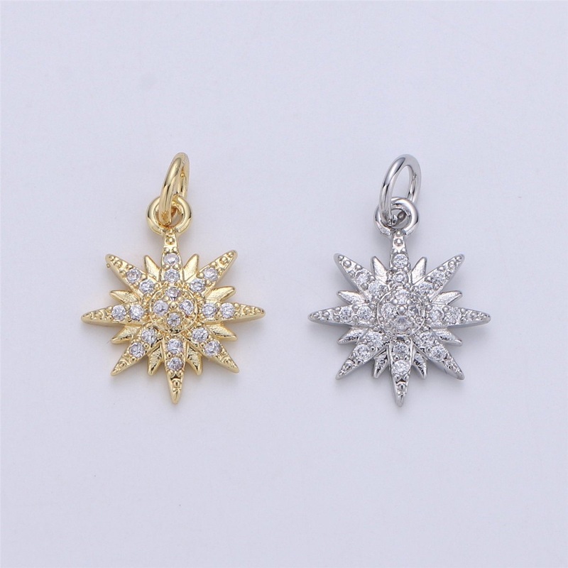 24K Gold filled Snowflake Snow Crystal Dainty Charm with Micro Pave Cubic Zirconia CZ Stone for Necklace or Bracelet,C-901 Gold
