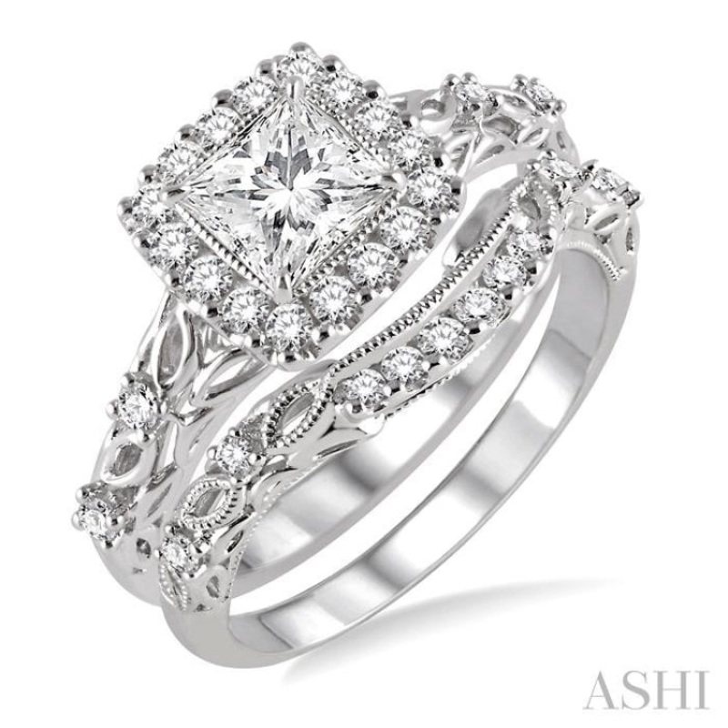 This beautiful milgrain finish diamond wedding set is a perfect symbol for the remembrance of your love for ever. Fashioned in glistening 14 karat white gold the engagement ring features a centrally staged gorgeous 3/8 ct prong set princess cut diamond com