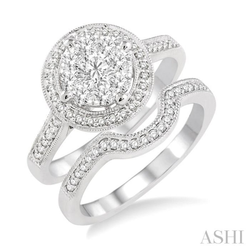 3/4 Ctw Diamond Wedding Set with 5/8 Ctw Lovebright Diamond Engagement Ring and 1/10 Ctw Wedding Band in 14K White Gold