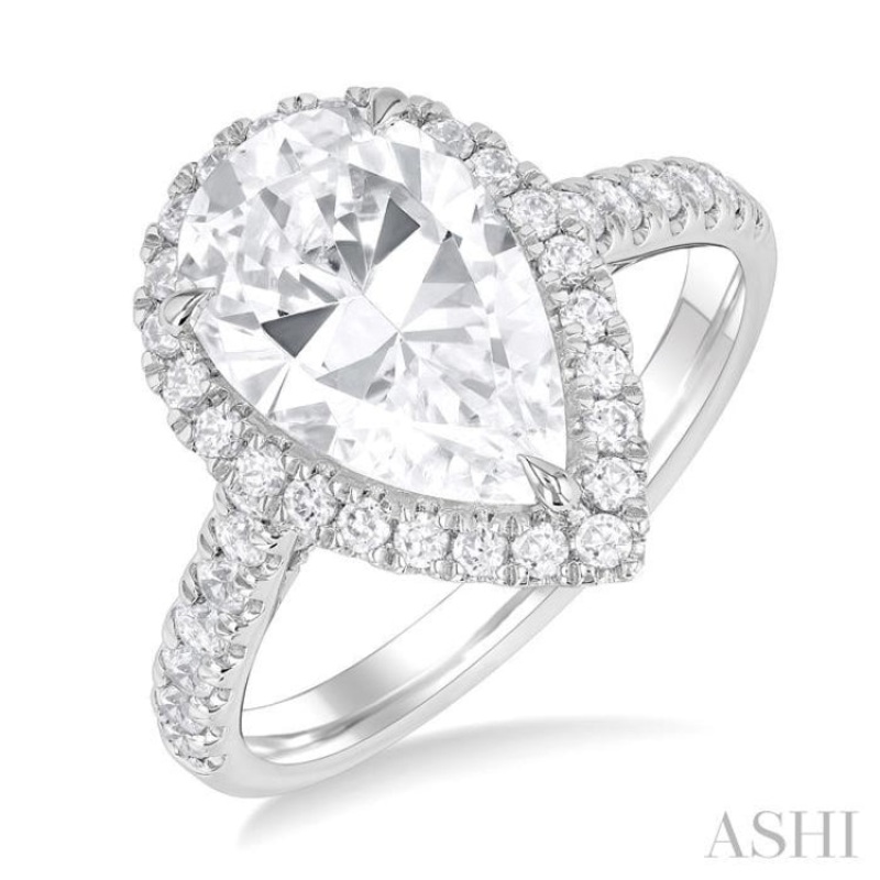 3/4 ctw Pear Shape Round Cut Diamond Halo Semi Mount Engagement Ring in 14K White Gold