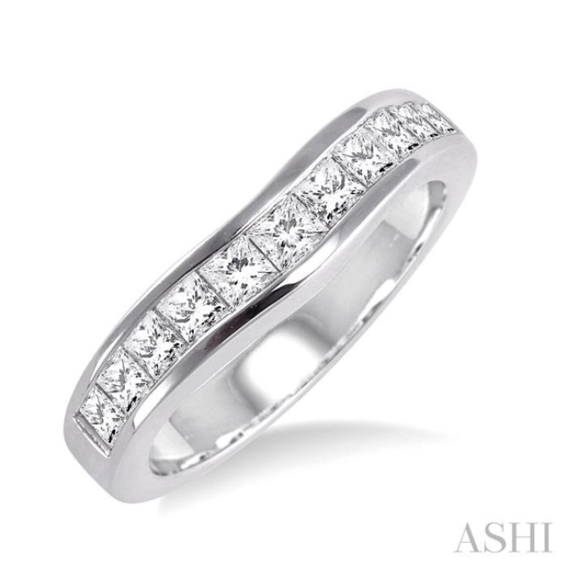 Cherish your eternal love with this princess cut diamond matching wedding band. This splendid band showcases a brilliant row of 11 magnificent princess cut diamonds in channel set, crafted in lustrous 14 karat white gold. Total diamond weight is 3/4 ctw.