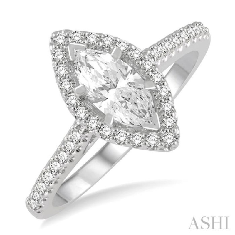 3/4 Ctw Round Cut Diamond Engagement Ring With 1/2 ct Marquise Cut Center Stone in 14K White Gold