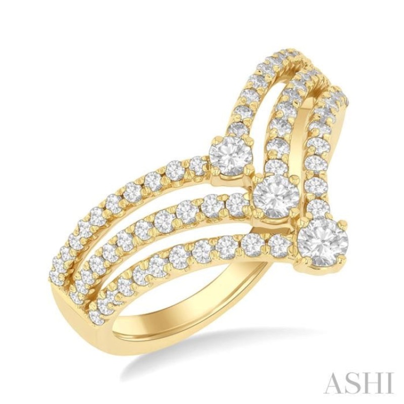 3/4 ctw Triple Chevron Round Cut Diamond Fashion Ring in 14K Yellow Gold